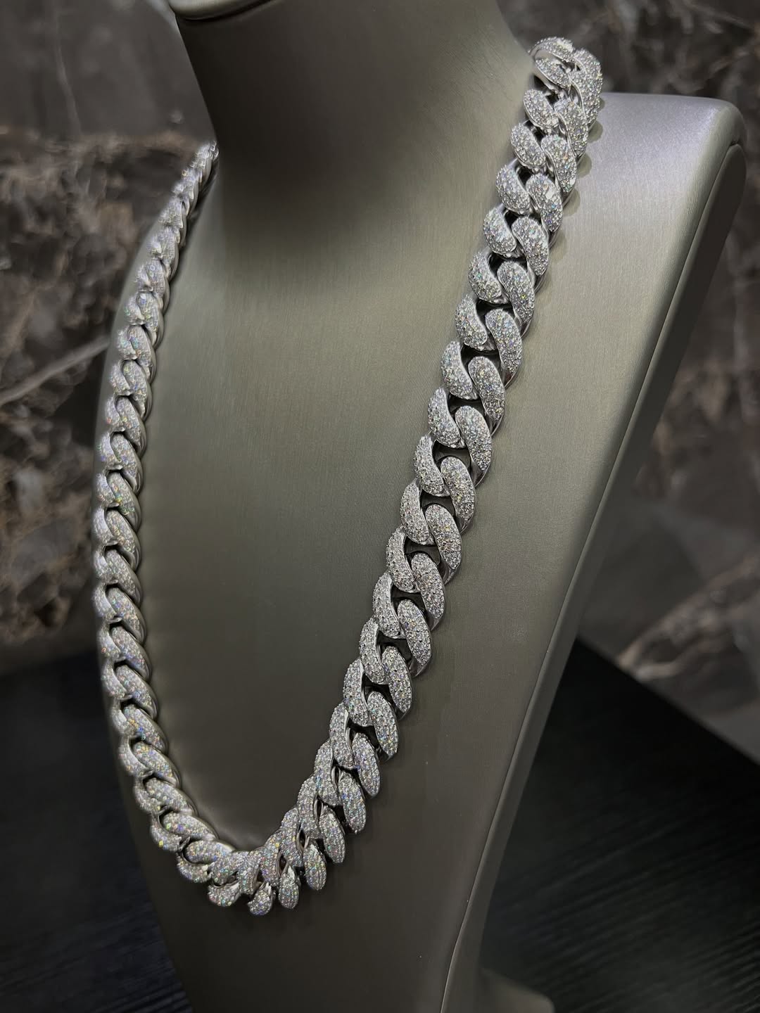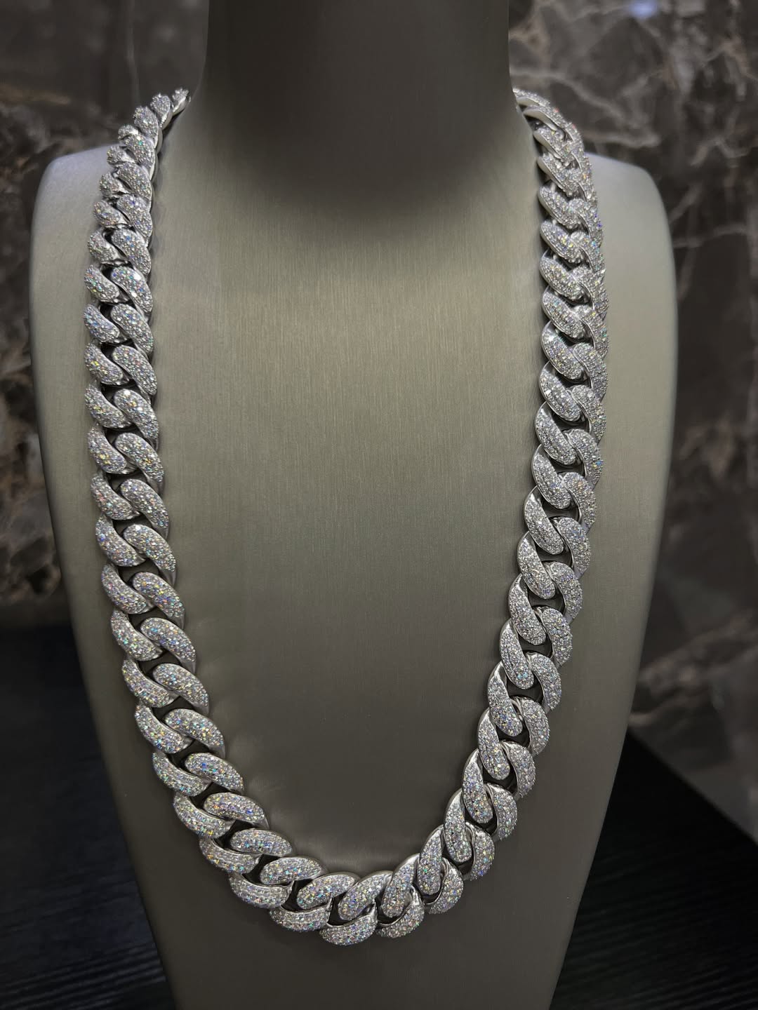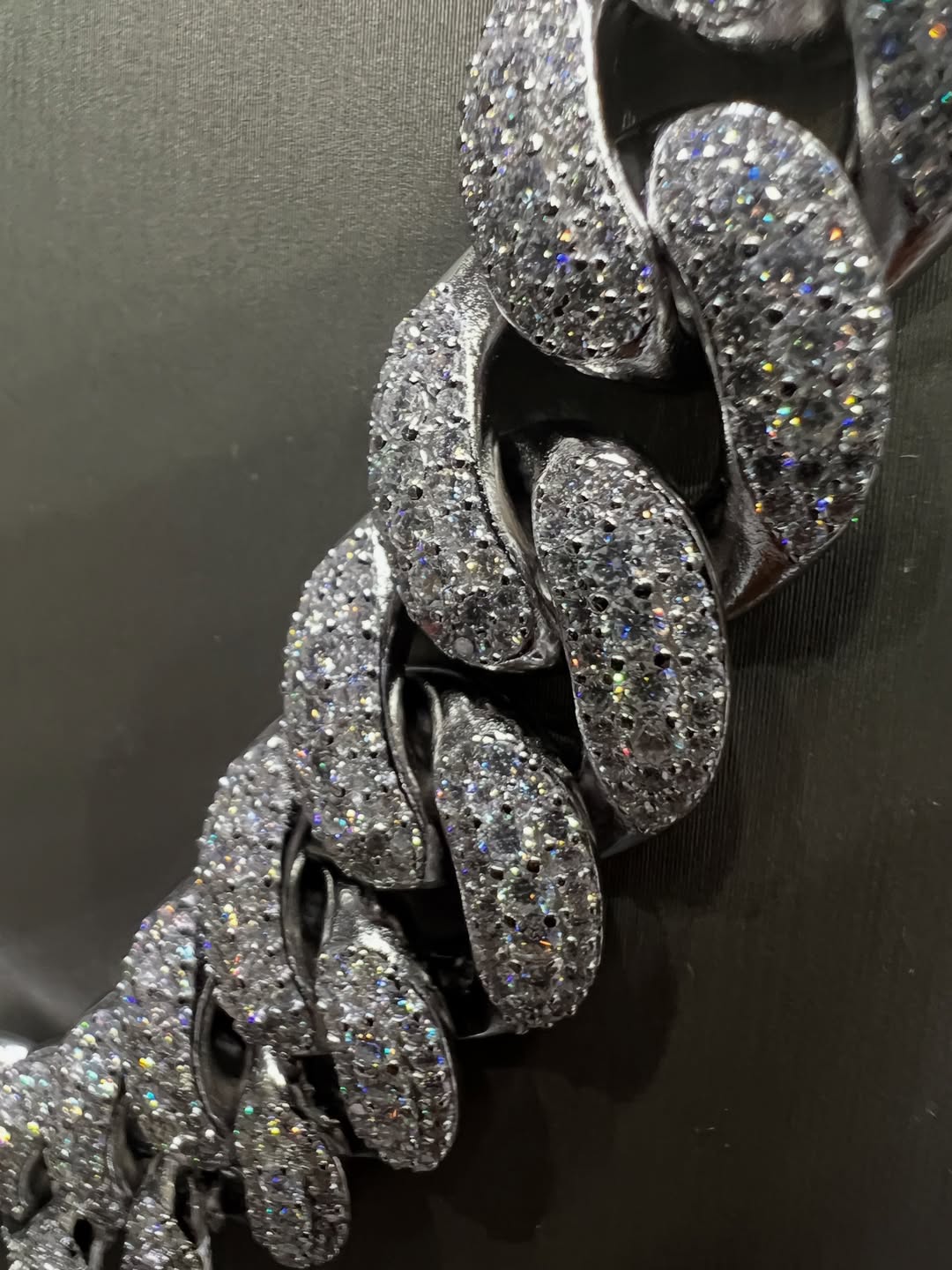 Chaque maillon, sculpté dans un alliage d’acier hautement poli, est serti à la main de pierres moissanite premium dont la brillance rivalise avec celle du diamant.
