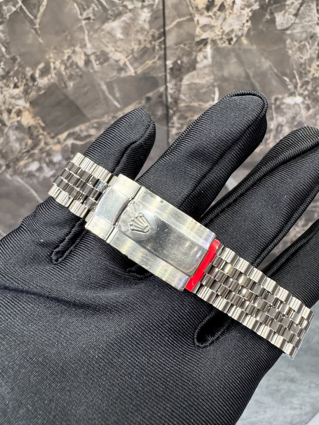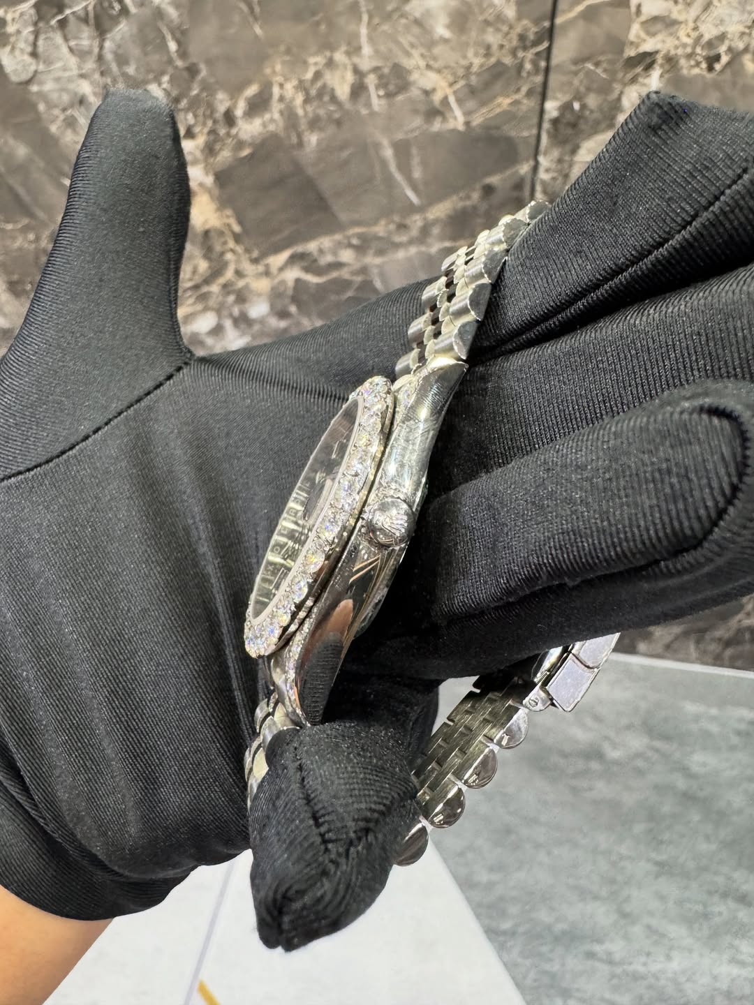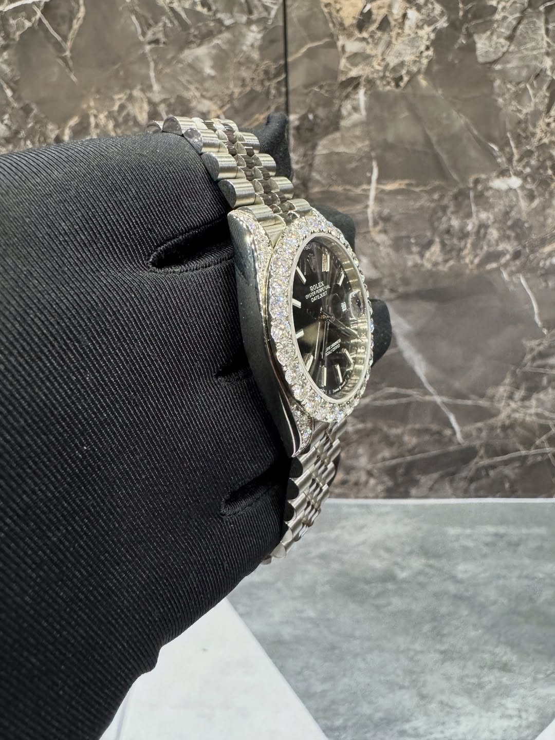 Avec son boîtier serti et son bracelet Jubilee poli miroir, cette pièce est un hommage à la sophistication intemporelle.